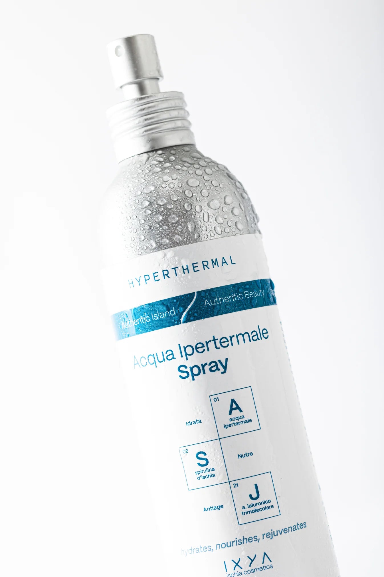 Hyperthermal Water Spray , refreshing and soothing with concentrated thermal water, Spirulina , 3 molecular weight Hyaluronic Acid , Aloe Vera and Fermented Minerals .
