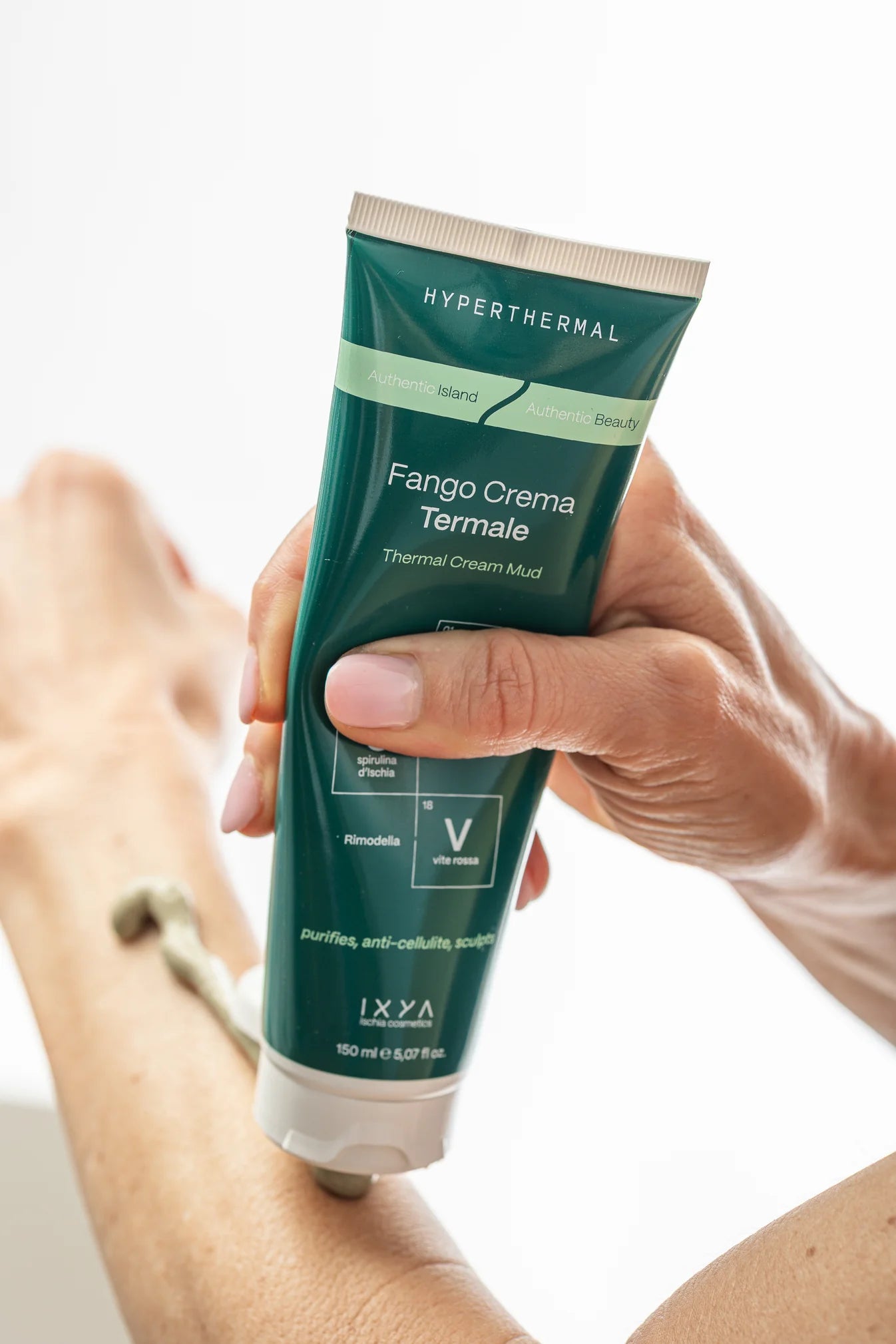 Thermal Cream Mud, modeling and draining . Liquid crystal emulsion with Natural Peloid, Pineapple, Red Vine and Centella. Multifunctional, improves elasticity and tone, fights free radicals and signs of aging. Pineapple exfoliates and refreshes, Spirulina regenerates, Centella soothes and firms. Perfect for a spa treatment at home: soft, compact and luminous skin from the first applications.